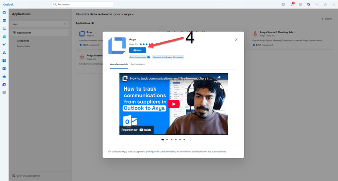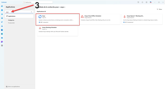 5. go back into outlook and click on the app icon again and you should see the Axya app. Click on it