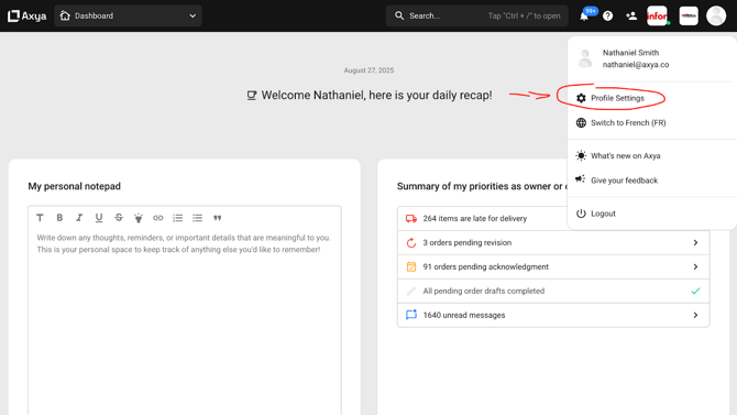 Select Profile Settings from the dropdown