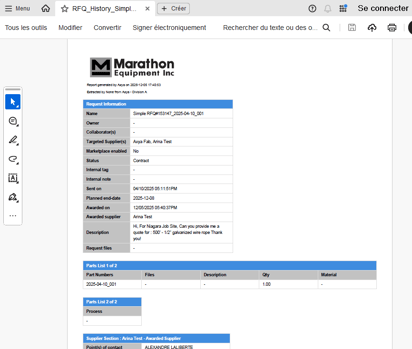 This automatically generates a comprehensive summary PDF of the entire RFQ.