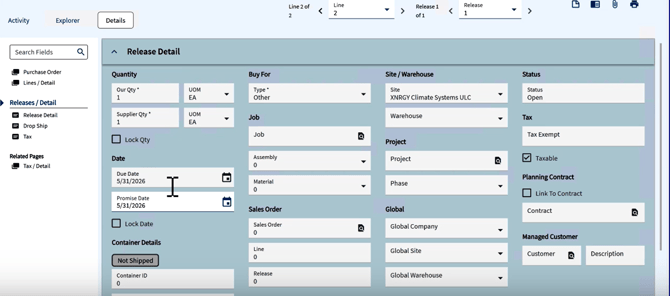 Open a Purchase Order in Epicor Kinetic.