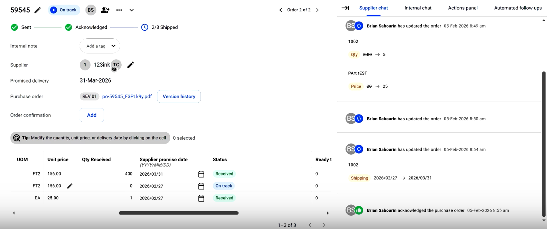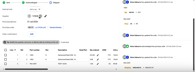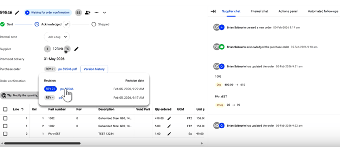 Resend the updated PO to the supplier