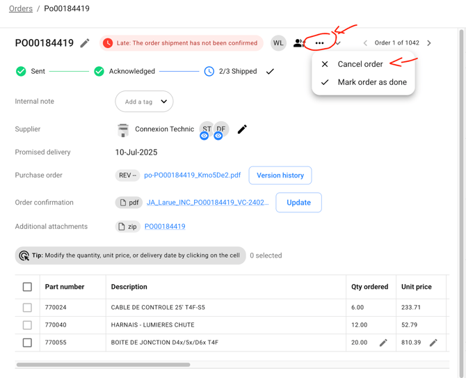 2. Cancelling an Order Sent to the Wrong Supplier