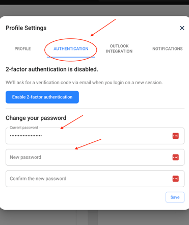 Enter your current password, then type your new password. You will need to confirm the new password by entering it again.