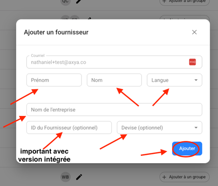 - Informez votre fournisseur à l’avance, avec un courriel provenant de votre adresse, que vous allez l’ajouter à Axya.
