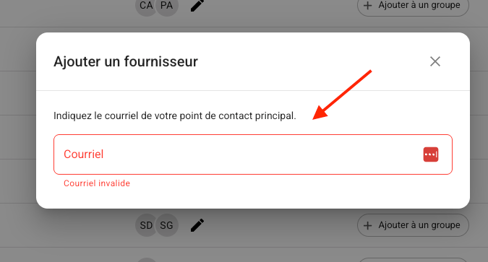 - Entrez le courriel du contact principal chez votre fournisseur.
