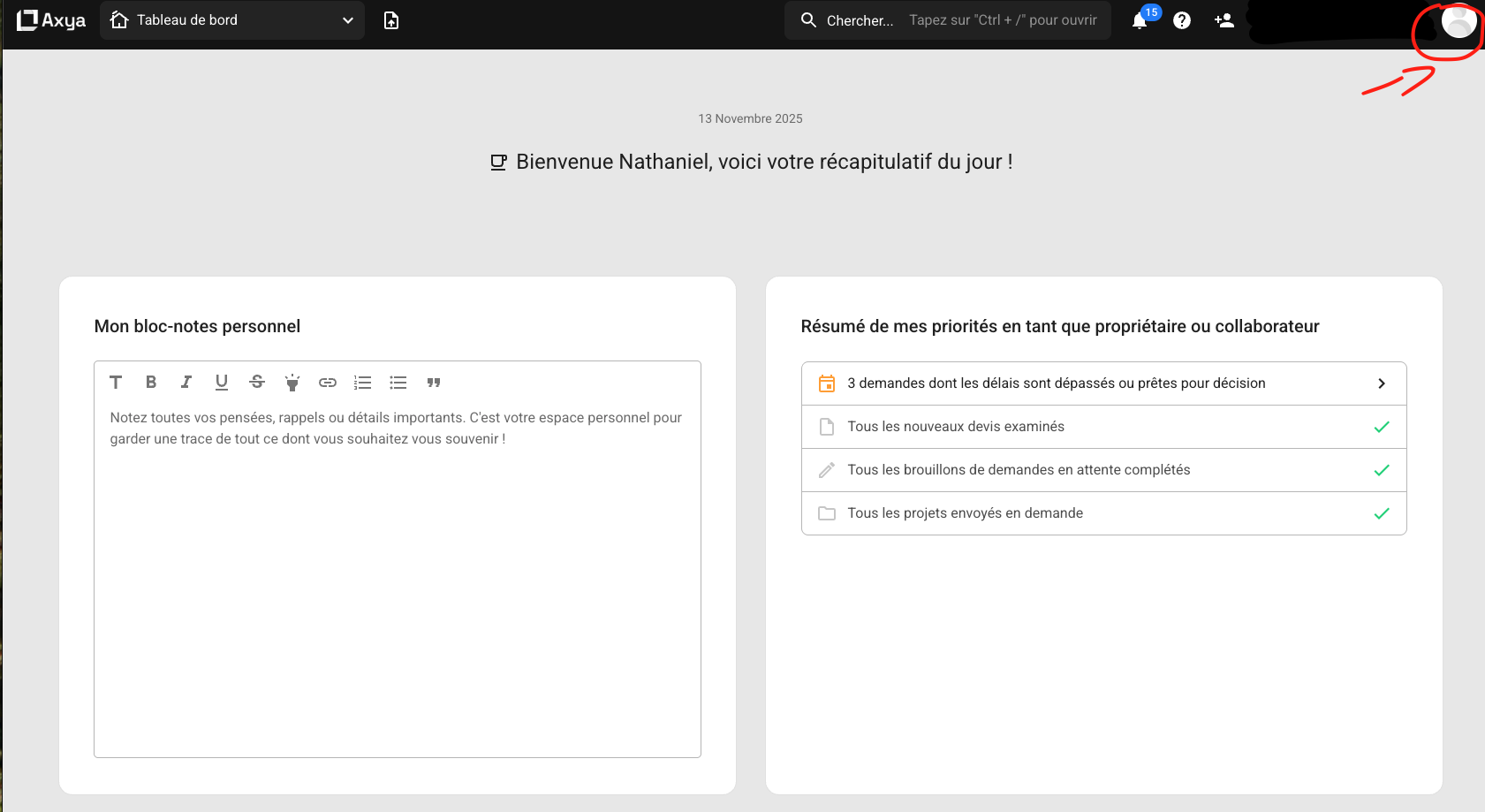 Cliquez sur votre icône de profil située dans le coin supérieur droit de l’écran.