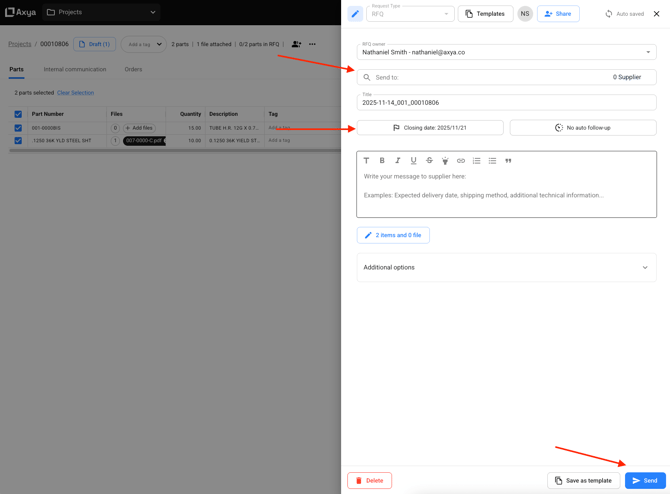 - Ajoutez tous les articles et quantités qui doivent être inclus dans la RFQ.