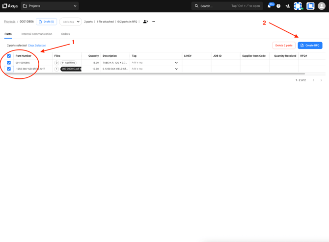 - Sélectionnez tous les articles si vous souhaitez une RFQ unique.