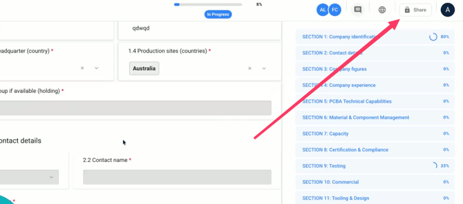 - Cliquez sur le bouton Partager (en haut à droite)