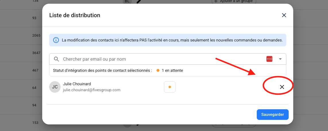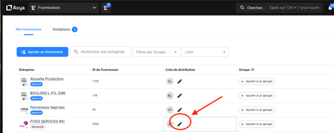 Cliquez sur l’icône de crayon à côté de la liste de distribution pour modifier.