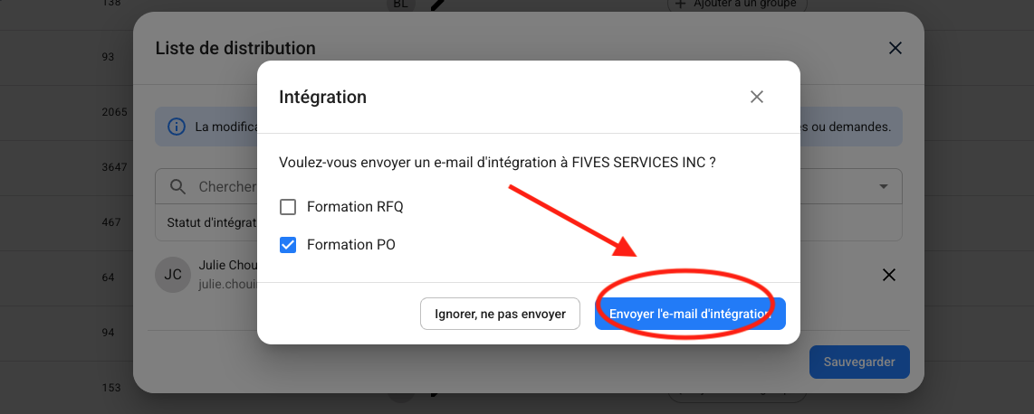 Vous pouvez également envoyer une formation au fournisseur pour lui présenter les fonctionnalités liées aux PO ou RFQ.