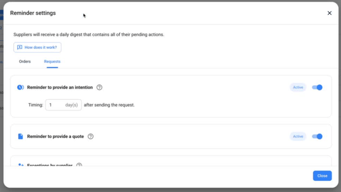 La fonctionnalité Résumé Quotidien des RFQ permet aux acheteurs et aux fournisseurs de rester alignés sur toutes les demandes de soumission ouvertes. Elle envoie automatiquement un résumé des actions requises, aide les fournisseurs à répondre plus rapidement et réduit les suivis manuels pour les acheteurs.